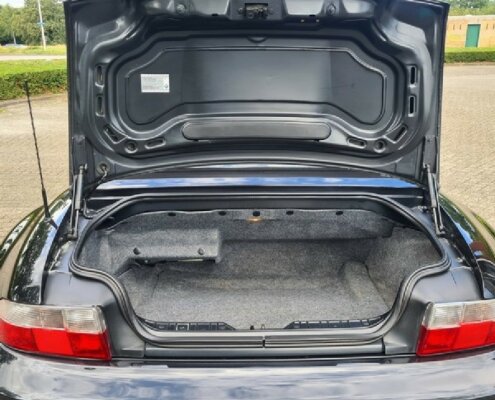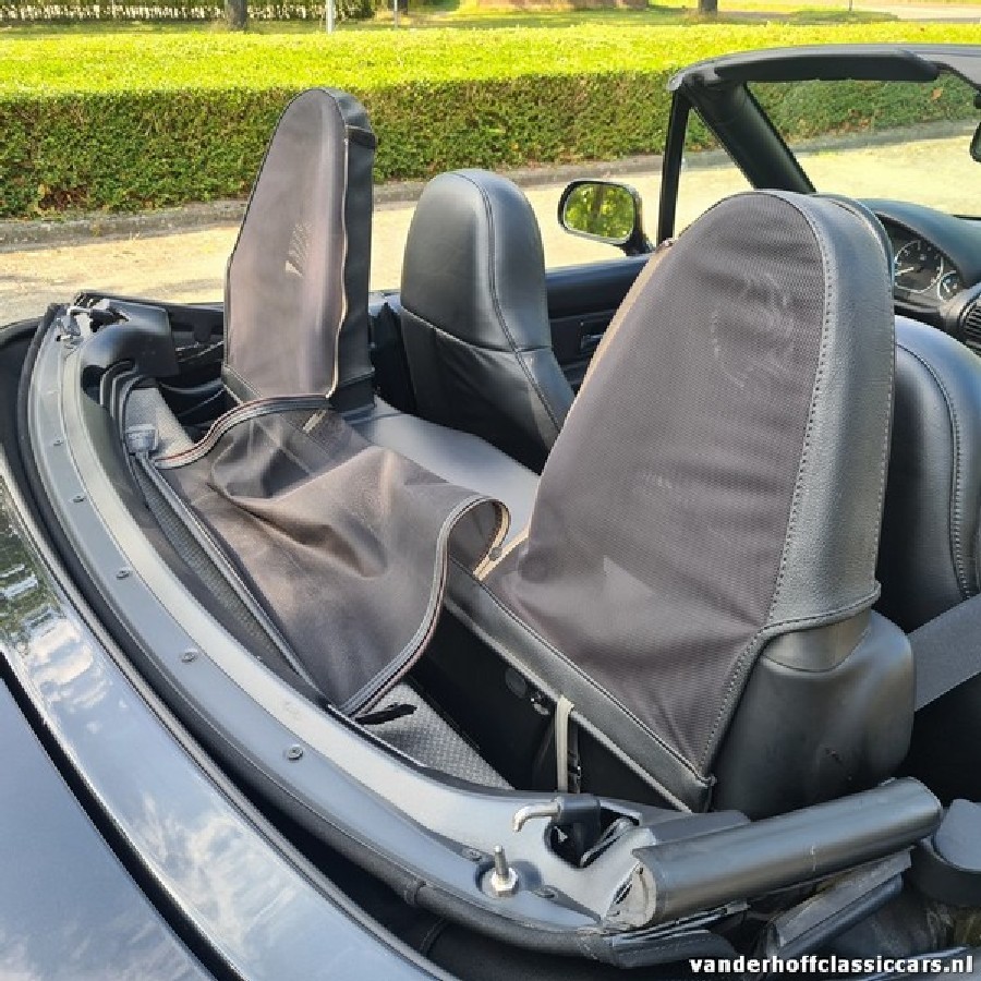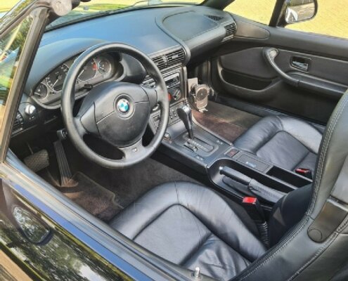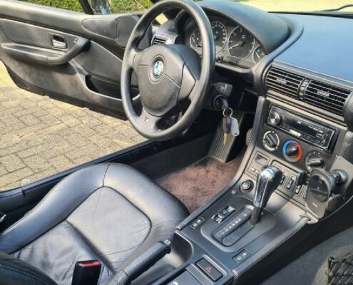 De Z3 is rijk uitgerust met onder andere een elektrische softtop met zo goed als nieuw achterruit, airconditioning, een zwarte winterkap, kofferrek met koffer en diverse stijlvolle details. Zowel interieur als exterieur verkeren in uitstekende staat, wat perfect past bij de verzorgde historie van deze auto.