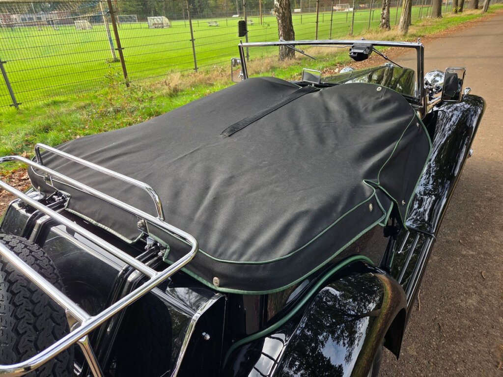 De body is nog altijd roestvrij en de zwarte lak heeft een schitterende glans. De auto heeft nauwelijks gebruikssporen en een zeer mooie patina.