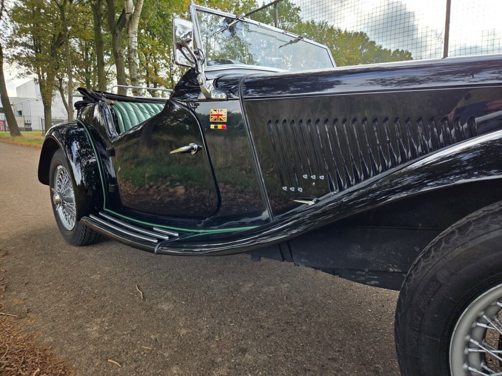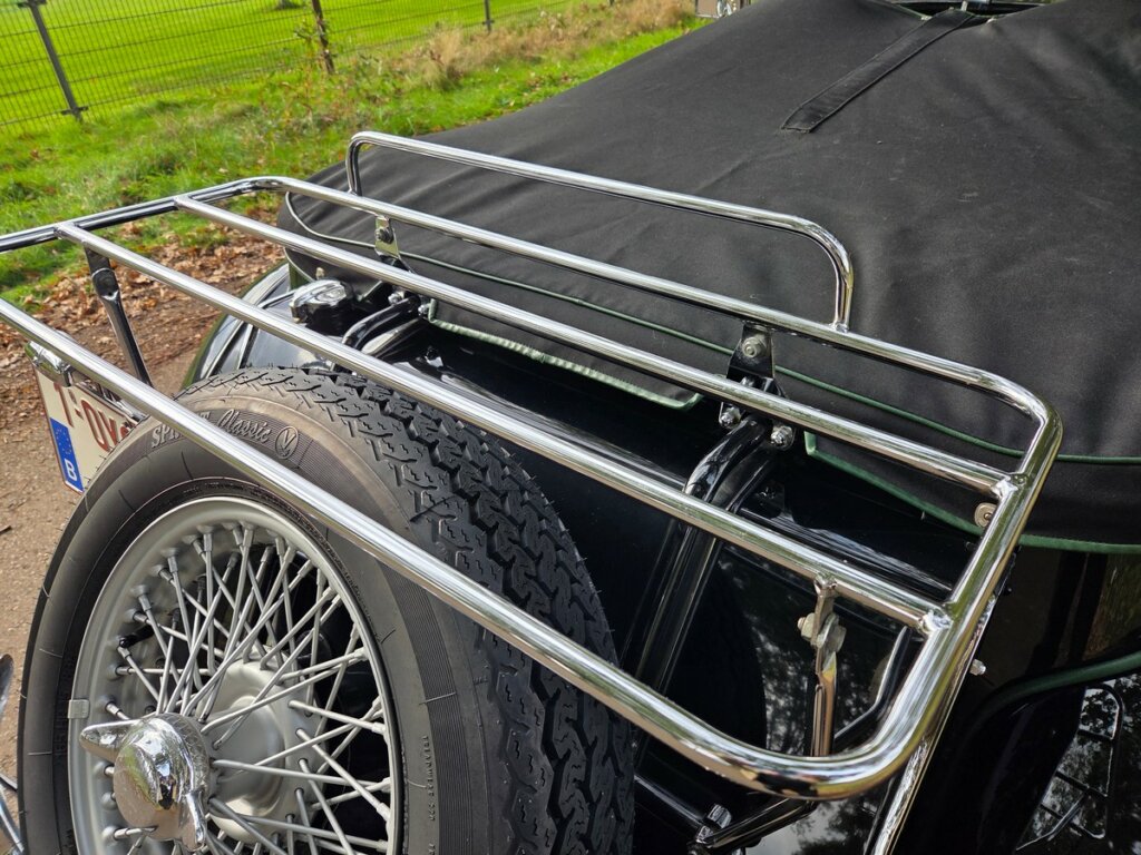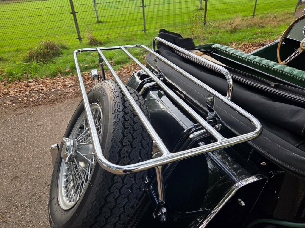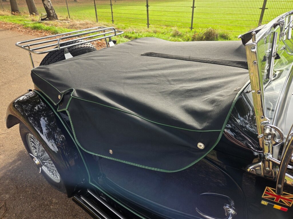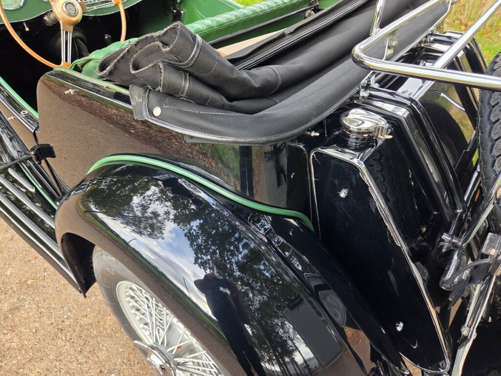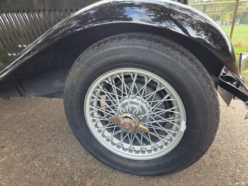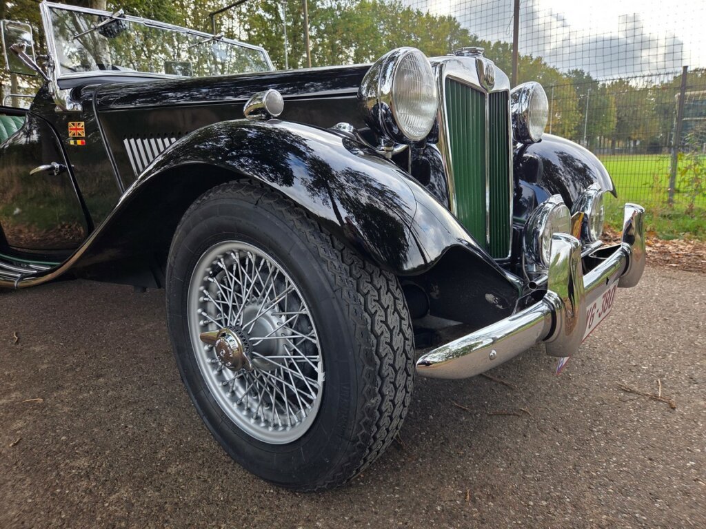 Wij verkopen namens een van onze relaties deze schitterende MG TD. De auto is in het verleden volledig gerestaureerd en is nog steeds in een prachtige staat. De combinatie van de zwarte lak en de groene bekleding inclusief de piping is schitterend en maakt de auto sportief en tegelijk chique.