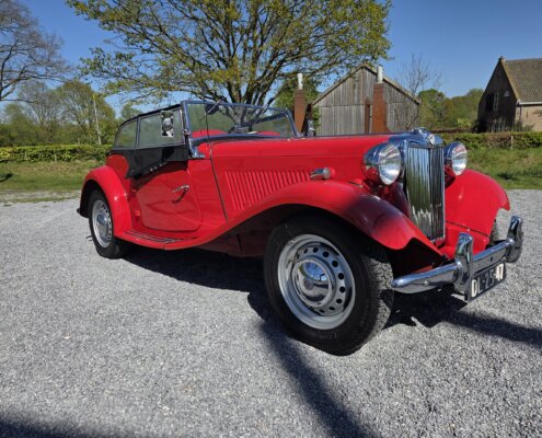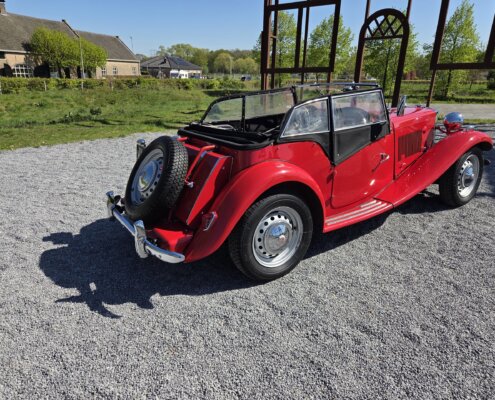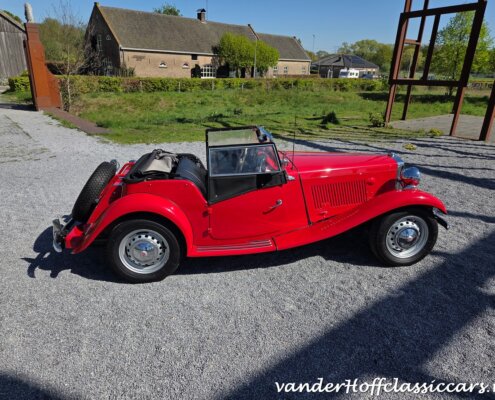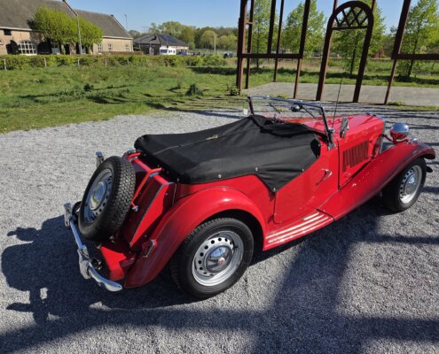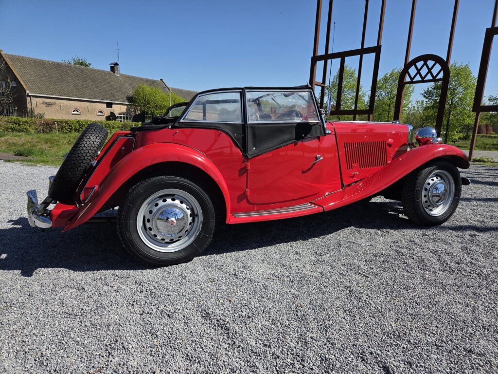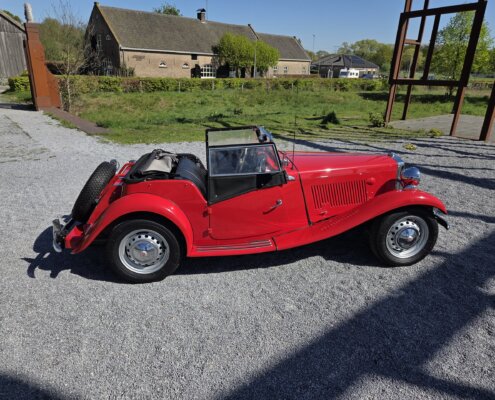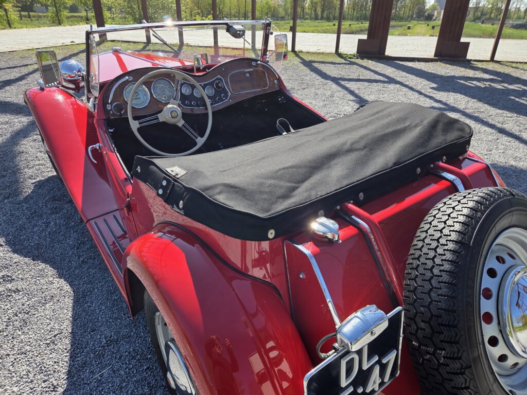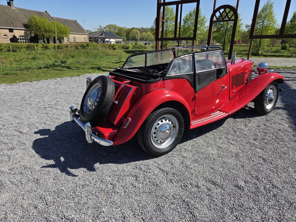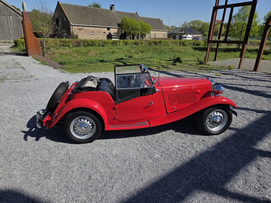Zonder meer een zeer fraaie MG TD C in het rood voor zien van de originele Xpag 4 cilinder benzine motor.