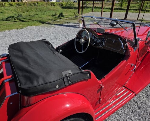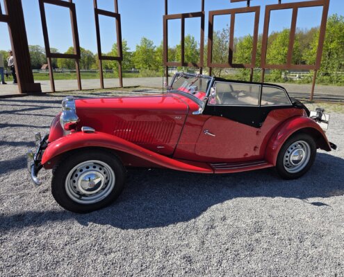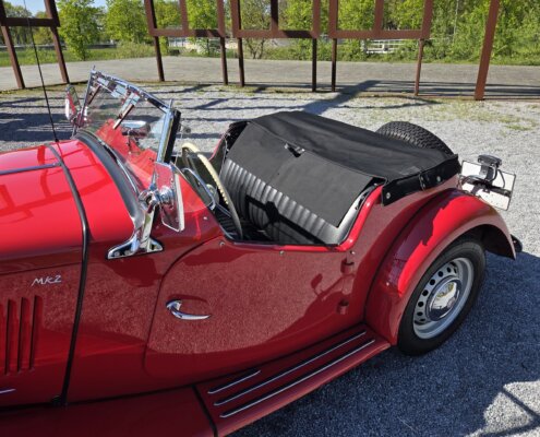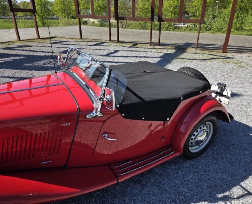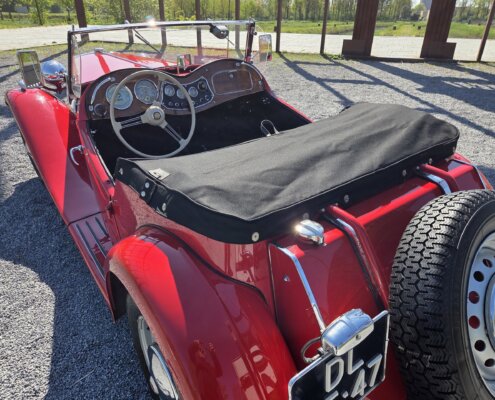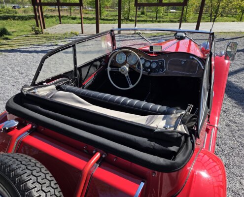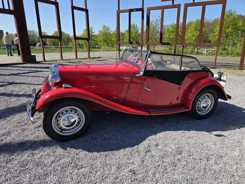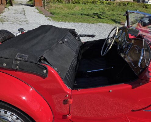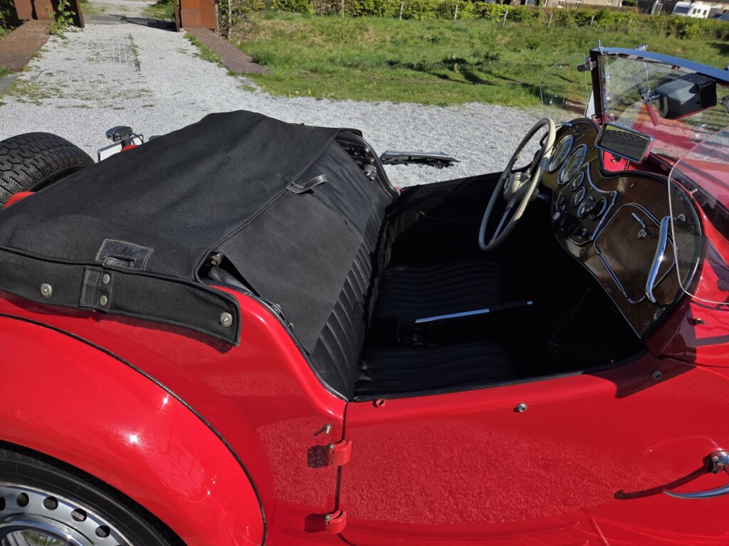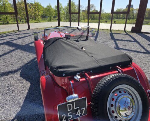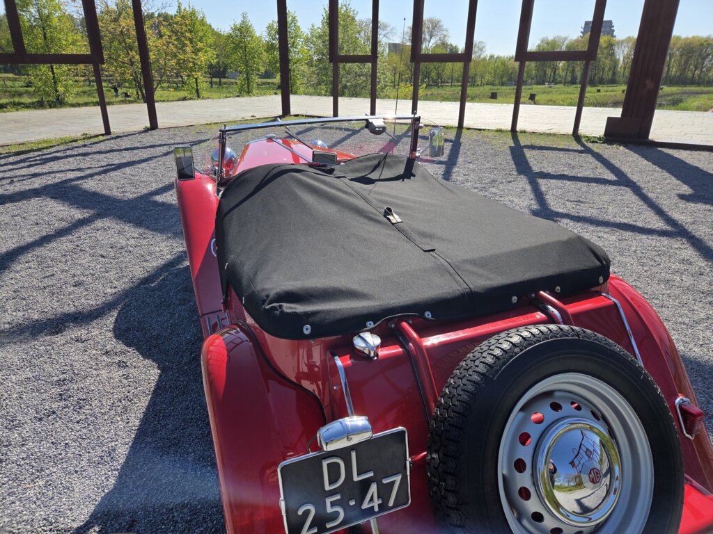 Zonder meer een zeer fraaie MG TD C in het rood voor zien van de originele Xpag 4 cilinder benzine motor.