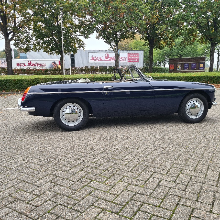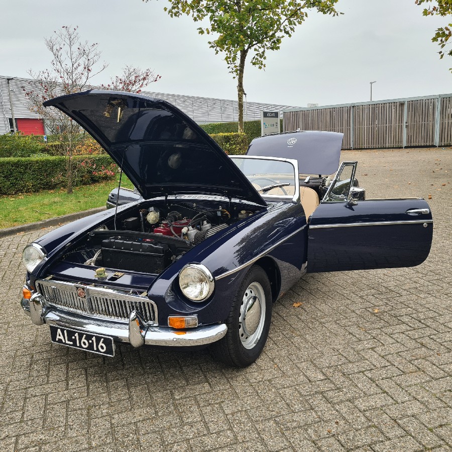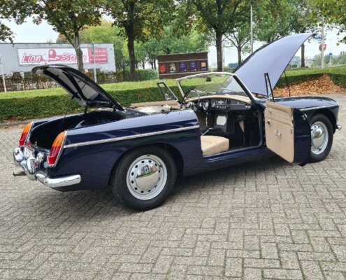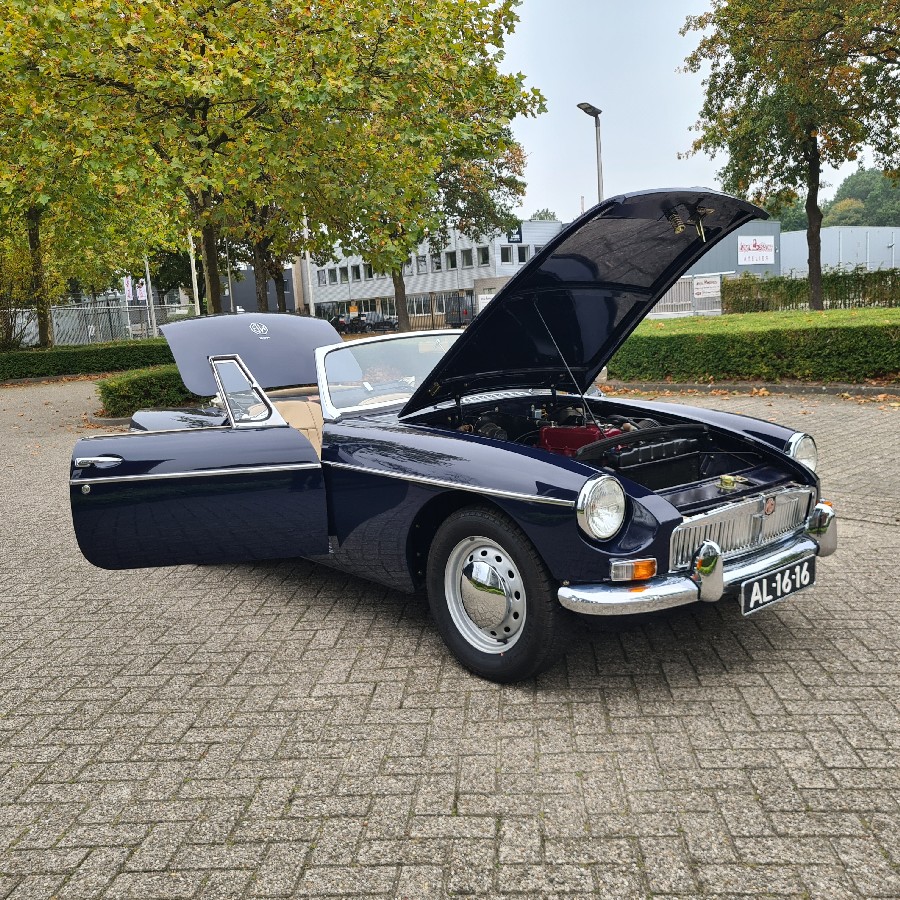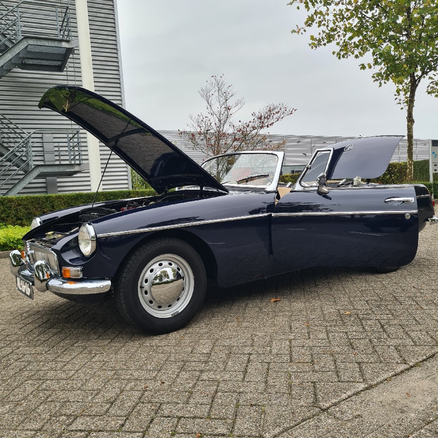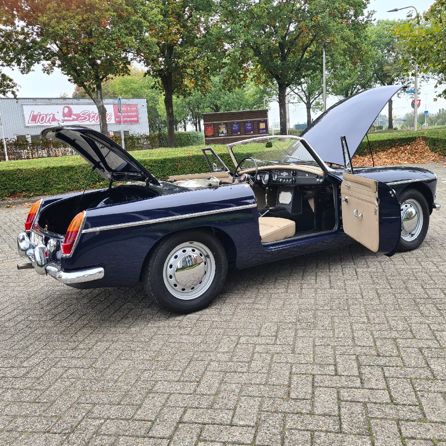 Een zeldzame kans voor de liefhebber! Deze beeldschone MGB uit 1963 schittert in de bijzondere kleur Midnight Blue en behoort tot de vroege modellen met het gewilde “lepeldeur”-type.