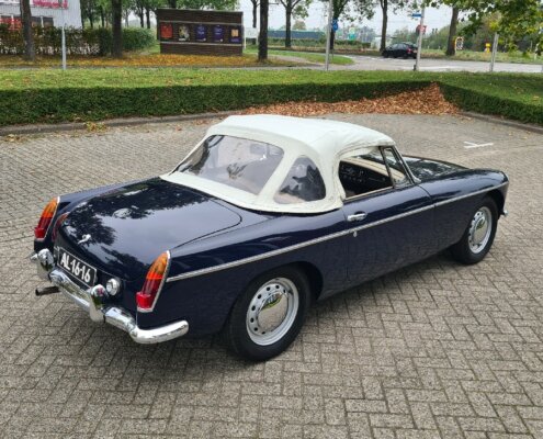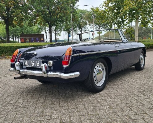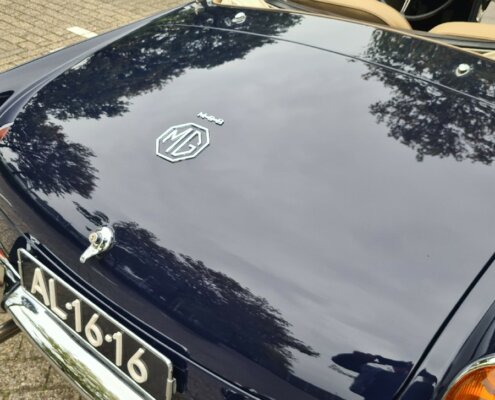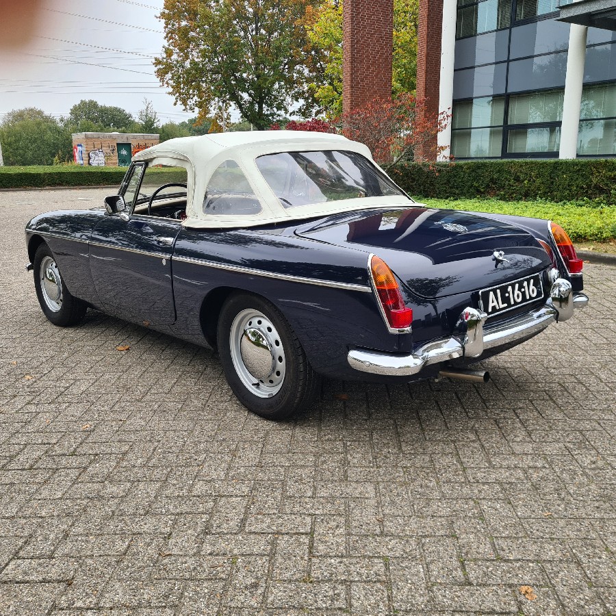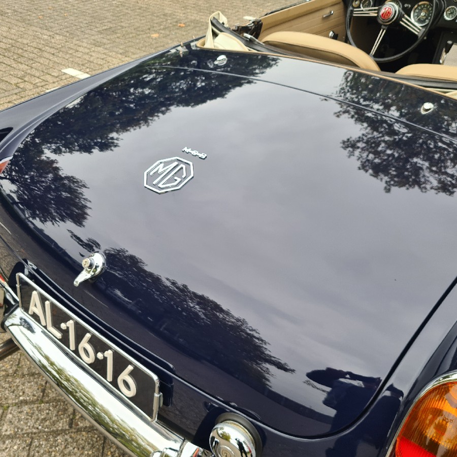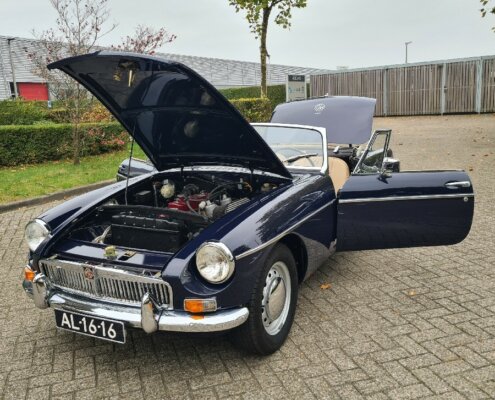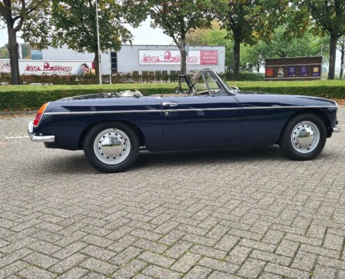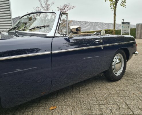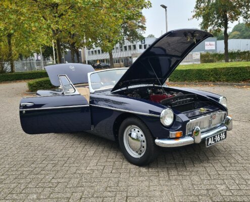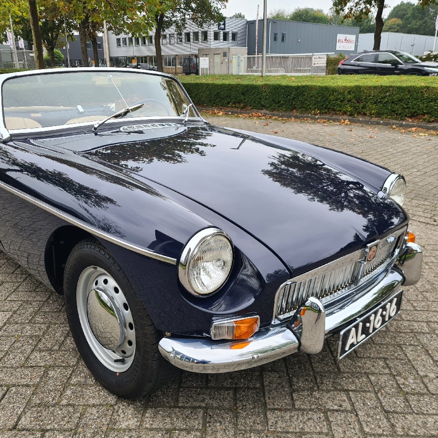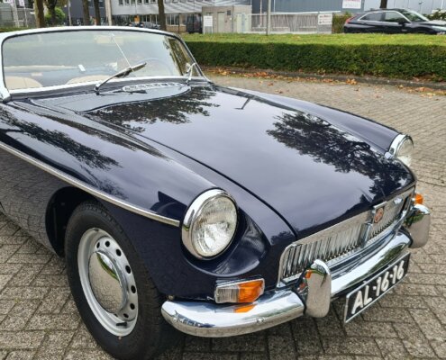 Een zeldzame kans voor de liefhebber! Deze beeldschone MGB uit 1963 schittert in de bijzondere kleur Midnight Blue en behoort tot de vroege modellen met het gewilde “lepeldeur”-type.