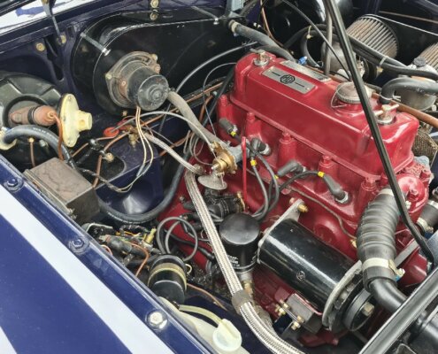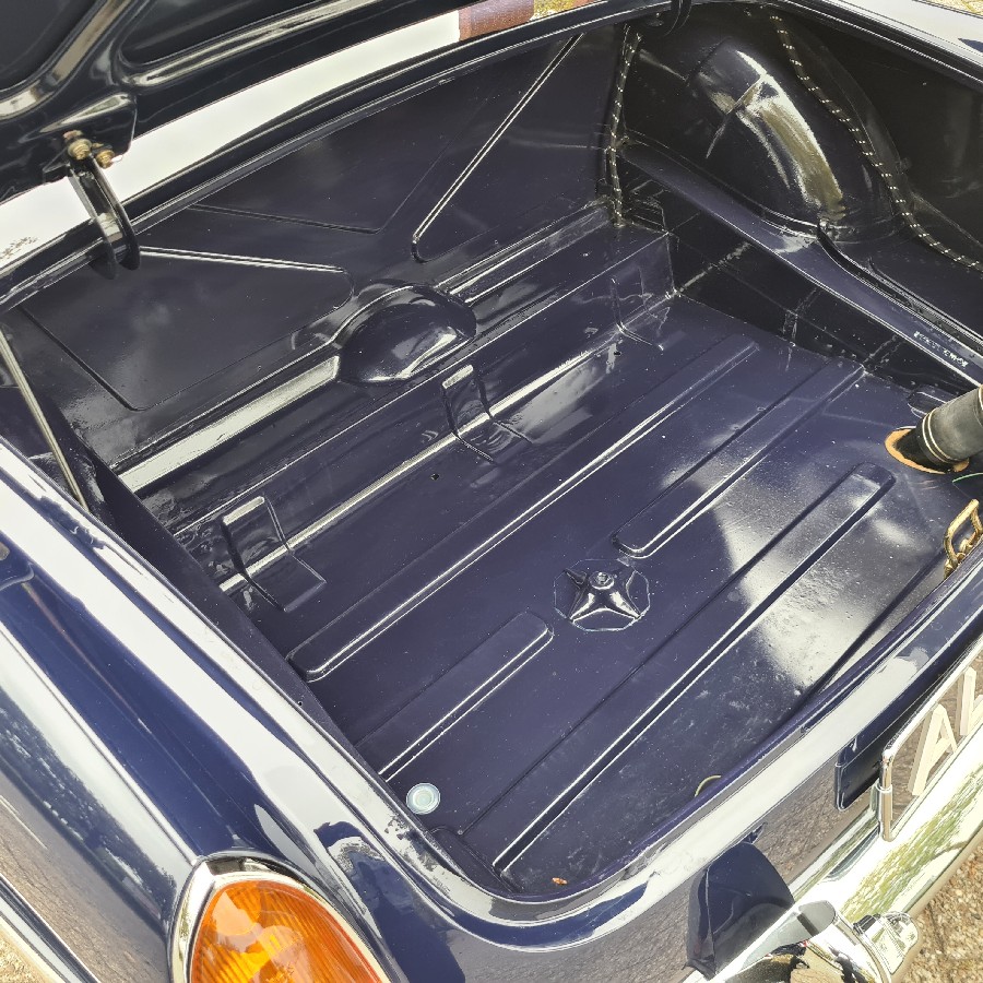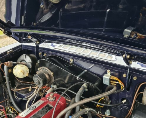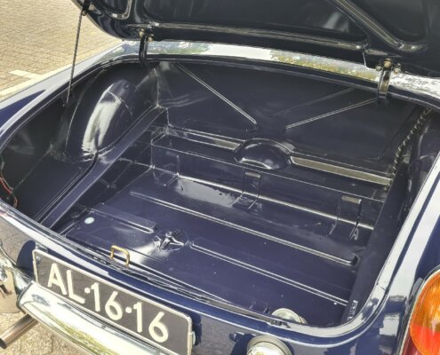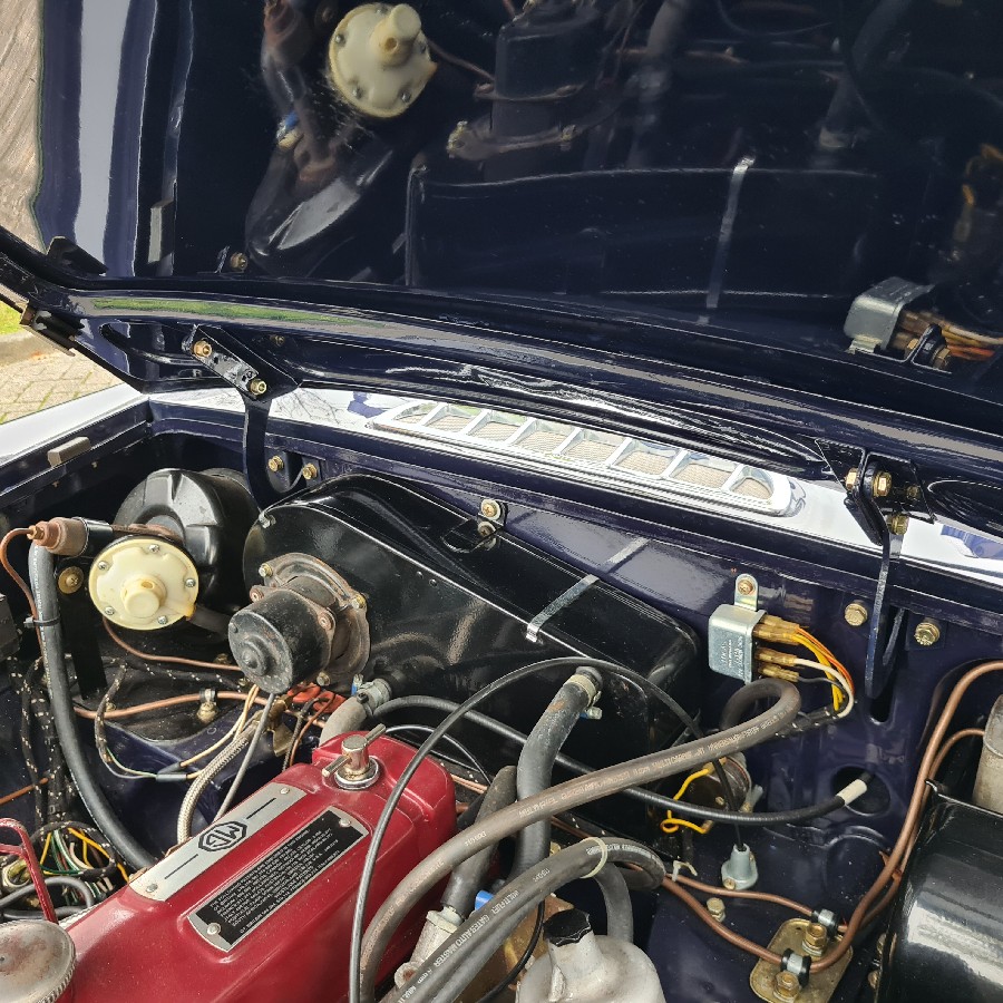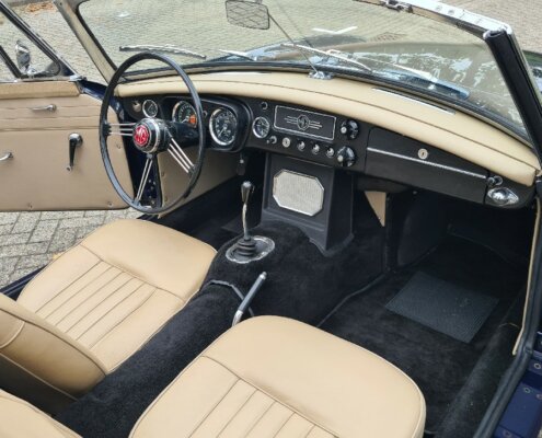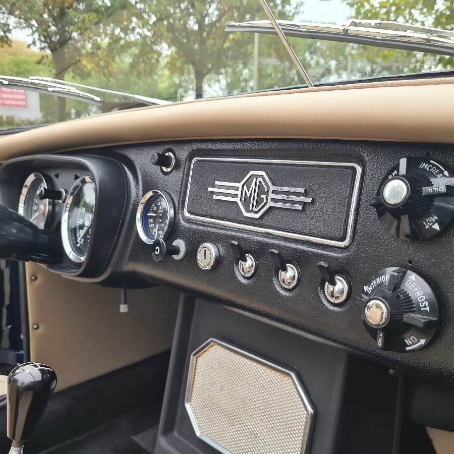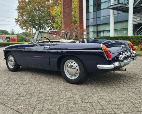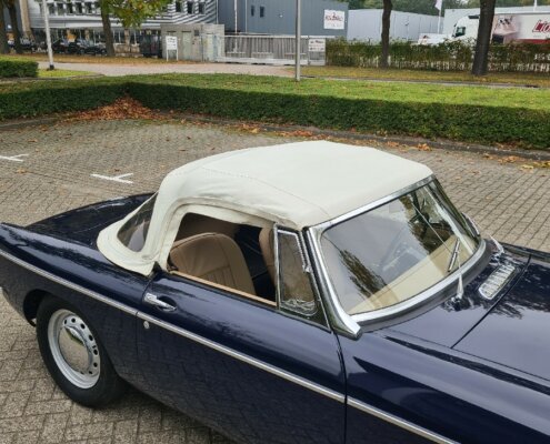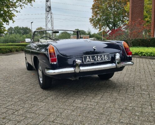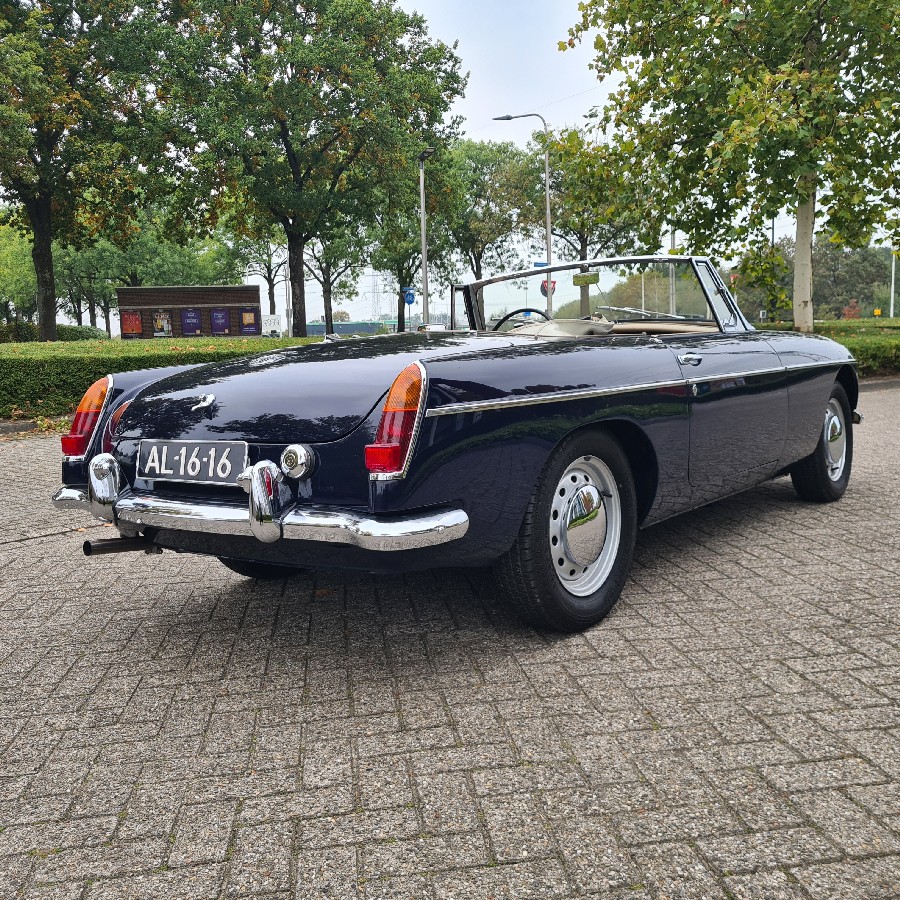 Een zeldzame kans voor de liefhebber! Deze beeldschone MGB uit 1963 schittert in de bijzondere kleur Midnight Blue en behoort tot de vroege modellen met het gewilde “lepeldeur”-type.